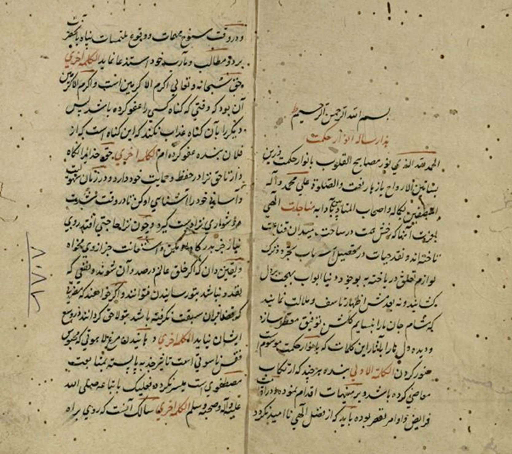 الحَمدُ للّهِ الّذی نَوّرَ مصابیحَ القلوبِ بِانوارِ حِکَمِهِ و زیّنَ بَسَاتِینَ الارواح بأزهارِ نِعَمِهِ والصلوة علی محمدٍ و آلهِ المصطفینَ بِکمالهِ و اصحابِه المتأدبینَ بآدابه.